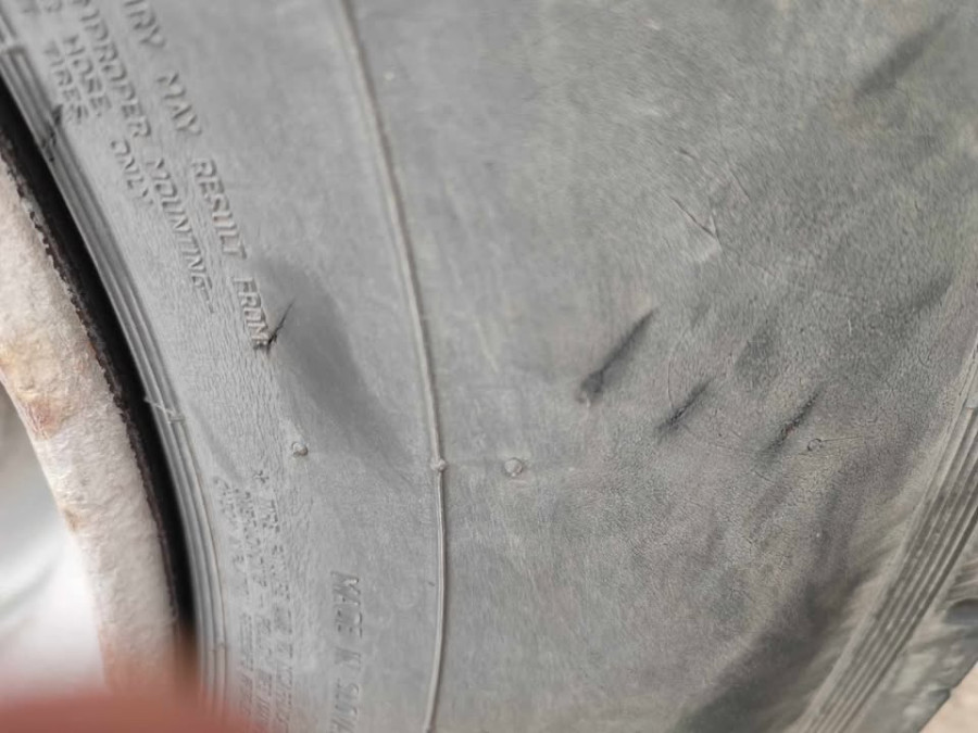 Pocięli i zniszczyli 3 sztuki opon. Koszt takich opon jest bardzo duży. Czwartej sprawcy nie zdążyli - zapewne musiał ktoś ich spłoszyć - może przejeżdżające auto albo pieszy.