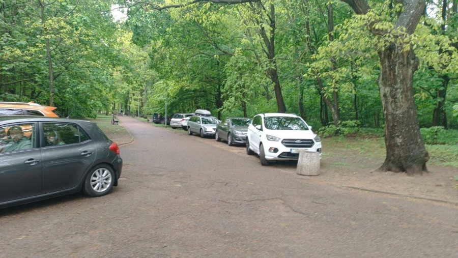Otóż wczoraj, w niedzielę, mnóstwo - naprawdę bardzo dużo samochodów stało w parku przy ścieżce wiodącej od strony ulicy Chrobrego do plaży nad Jeziorem Sajmino. Według naszej czytelniczki, takie parkowanie nie powinno mieć miejsca:
