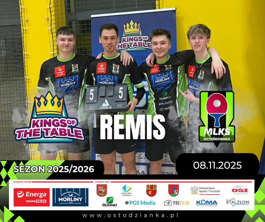 Spotkanie trwało ponad trzy godziny, a wynik ważył się dosłownie do ostatnich uderzeń. Ostródzianie „rzutem na taśmę” wyrwali cenny remis i wciąż pozostają w czołówce ligowej tabeli.