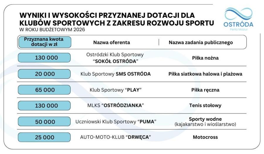 Dla wielu klubów to gwarancja stabilnego funkcjonowania i możliwość dalszego rozwoju, a dla mieszkańców – szansa na aktywne spędzanie czasu i kolejne sportowe emocje w Ostródzie.