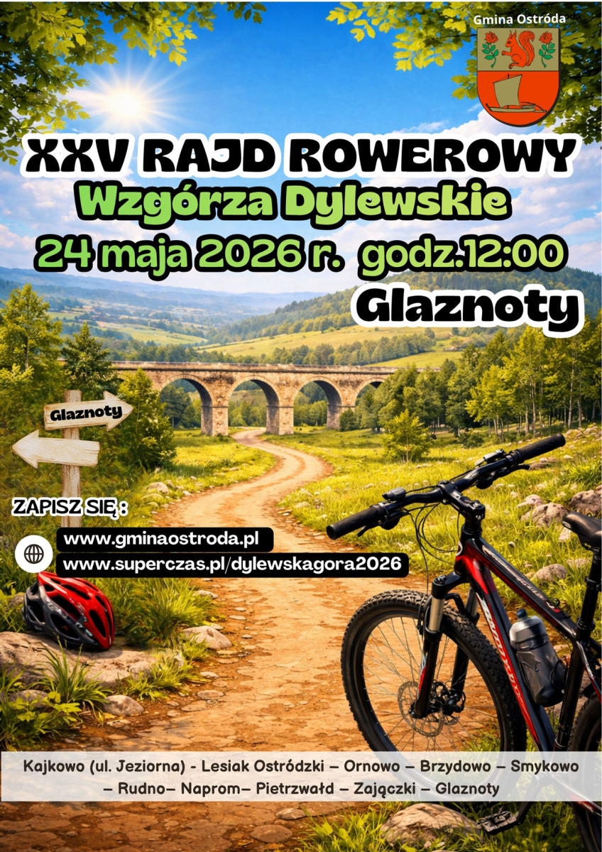 Start rajdu zaplanowano na godzinę 12:00 w Kajkowo przy ul. Jeziornej. Uczestnicy wyruszą w trasę prowadzącą przez jedne z najbardziej malowniczych terenów regionu, przemierzając m.in. Lesiak Ostródzki, Ornowo, Brzydowo, Smykowo, Jankowiec, Naprom, Pietrzwałd oraz Zajączki. Finał wydarzenia przewidziano w Glaznotach w okolicach zabytkowego wiaduktu kolejowego.