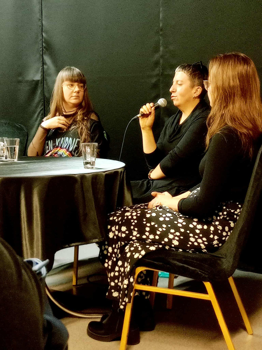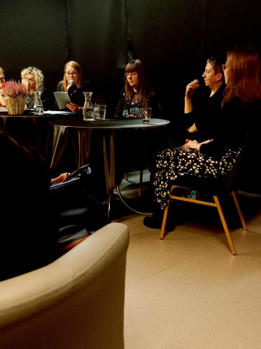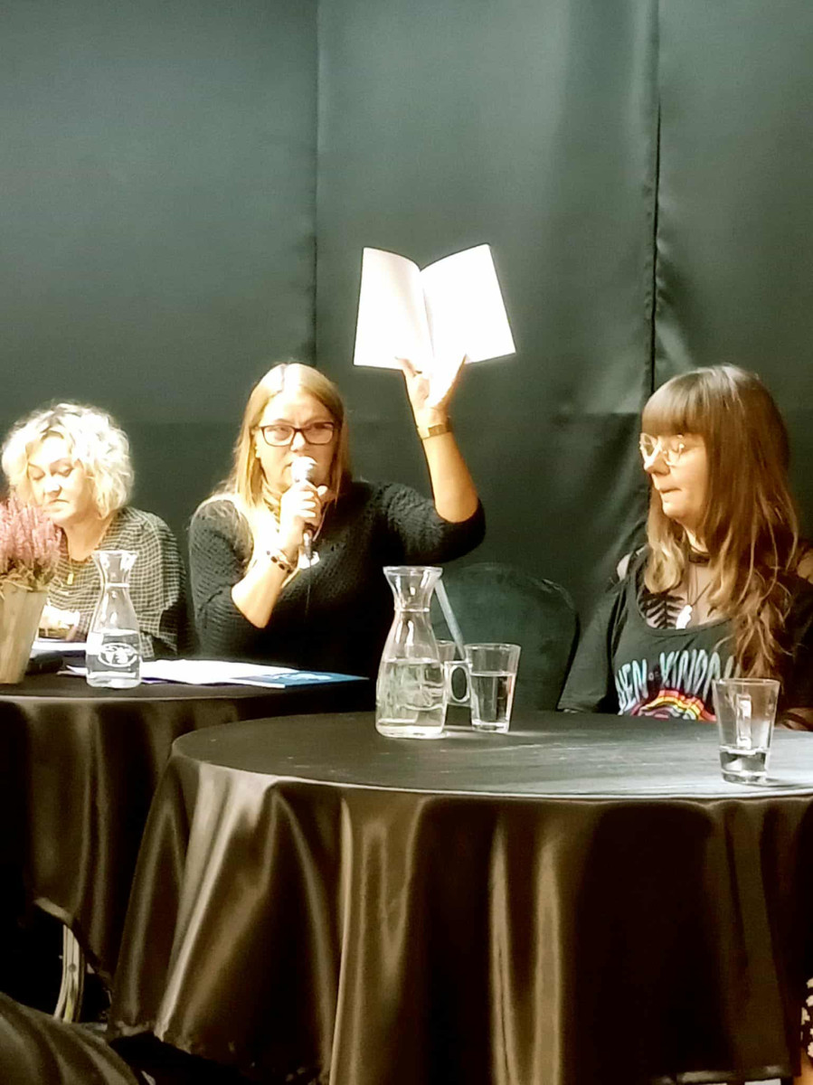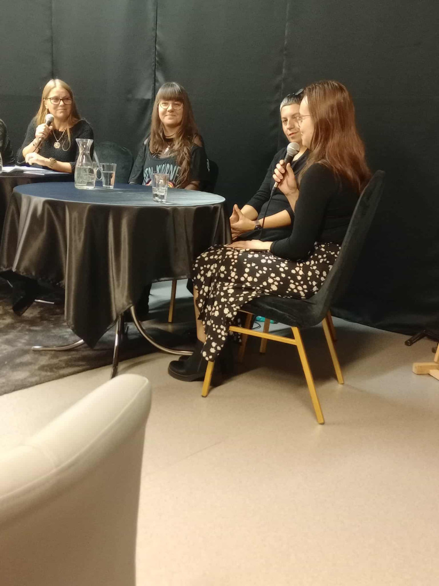 Rozmowę z autorkami poprowadziła Elżbieta Jakubiak, która wprowadziła uczestników w świat twórczości zaproszonych gości i z wyczuciem kierowała wywiadem, zachęcając do dzielenia się osobistymi historiami i literackimi refleksjami.