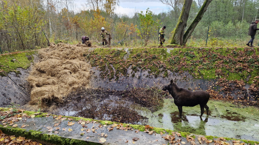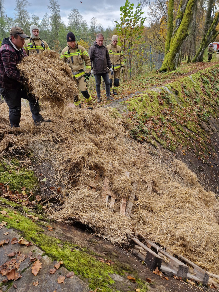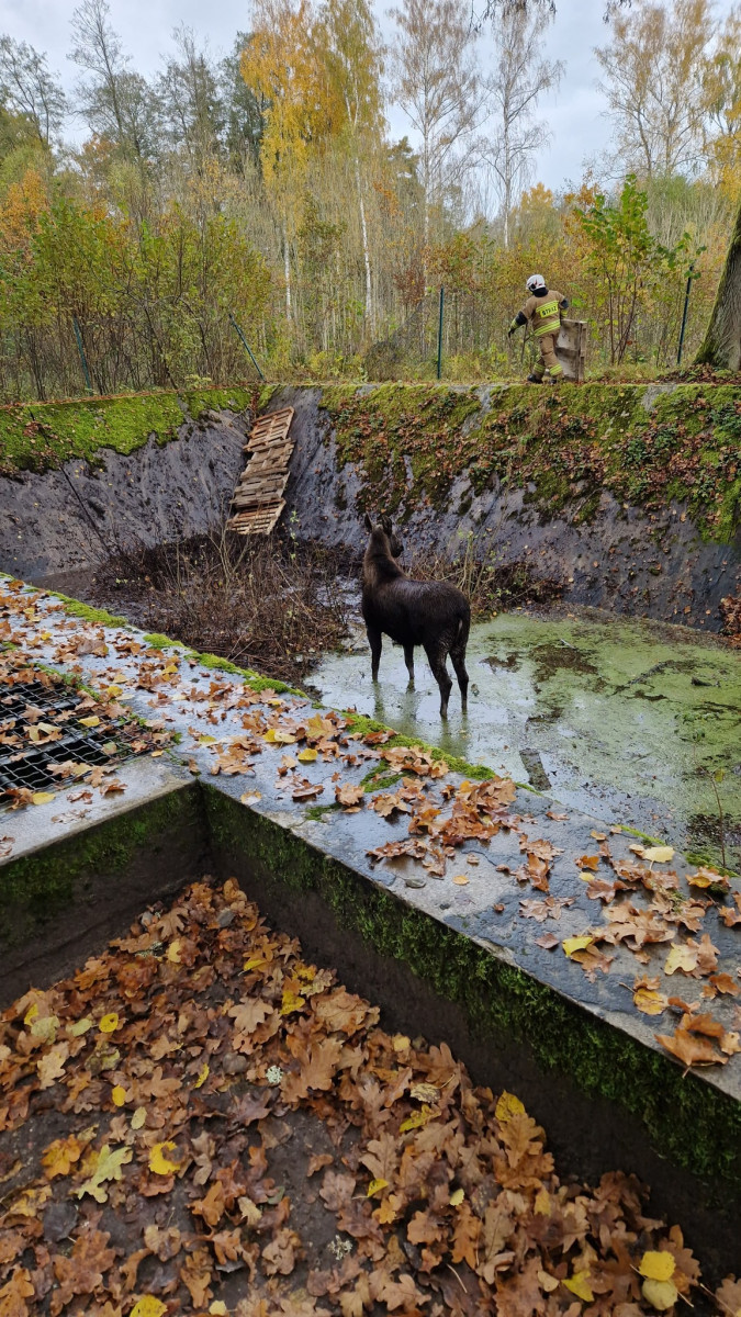 Dzięki zaangażowaniu wielu osób i pomysłowemu wykorzystaniu dostępnych materiałów, sytuacja zakończyła się szczęśliwie. Z drewnianych palet oraz trzech balotów słomy, udostępnionych przez pana Mateusza Sobótkę, zbudowano prowizoryczny podest, po którym zwierzę mogło bezpiecznie wydostać się z pułapki. W działaniach wsparcia udzielił również Powiatowy Inspektorat Weterynarii w Kętrzynie.