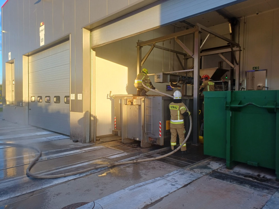 Na szczęście pożar nie wyszedł poza pojemnik i udało się go dość szybko ugasić.