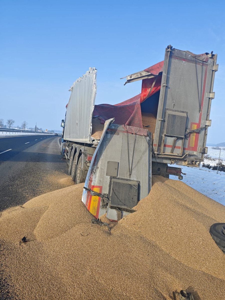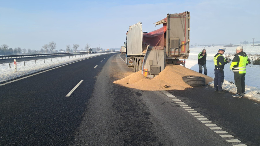 Jak informują policjanci z Komendy Powiatowej Policji w Nidzicy, wyłączony z ruchu na kilka godzin został jeden pas ruchu drogi ekspresowej w kierunku Ostródy. Droga może być zablokowana przez kilka godzin, do czasu usunięcia zboża z drogi.