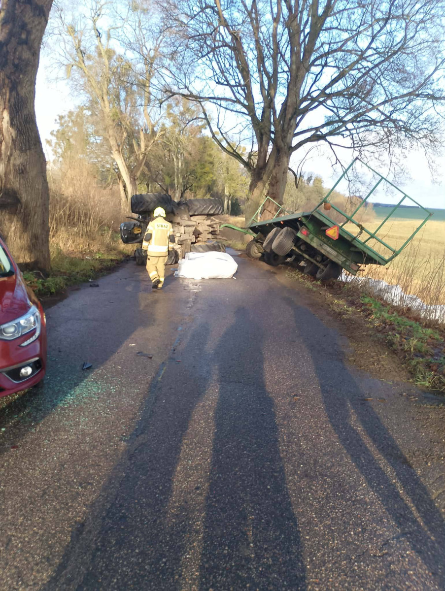 Jak poinformowała portal Ostróda Flesz podkom. Anna Karczewska z Komendy Powiatowej Policji w Ostródzie, doszło tam do kolizji drogowej z udziałem ciągnika rolniczego z naczepą oraz pojazdu uprzywilejowanego.