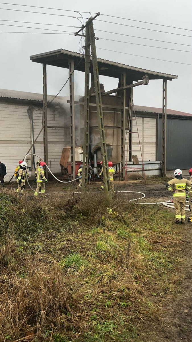 Działania straży pożarnej polegały na sprawdzeniu kamerą termowizyjną silosu suszarni do zboża i podaniu jednego prądu wody w natarciu do jego wnętrza. Strażacy zabezpieczeni w sprzęt ratownictwa wysokościowego i aparaty ochrony układu oddechowego podali jeden prąd gaśniczy wody od góry silosu z drabiny znajdującej się na jego konstrukcji - przekazał st. kpt. Łukasz Zaniewski.