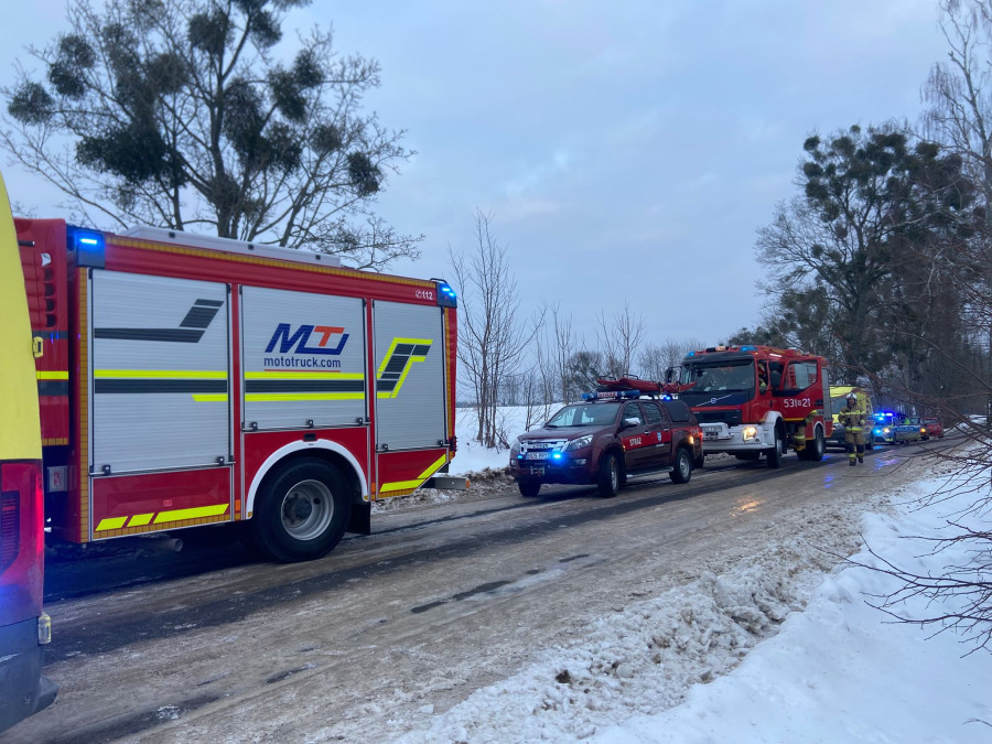 Jak poinformował Zastępca Komendanta Powiatowego Państwowej Straży Pożarnej w Ostródzie st. kpt. Łukasz Zaniewski, do stanowiska kierowania PSP wpłynęło zgłoszenie o wypadku, w którym jedna z osób miała być uwięziona w pojeździe.