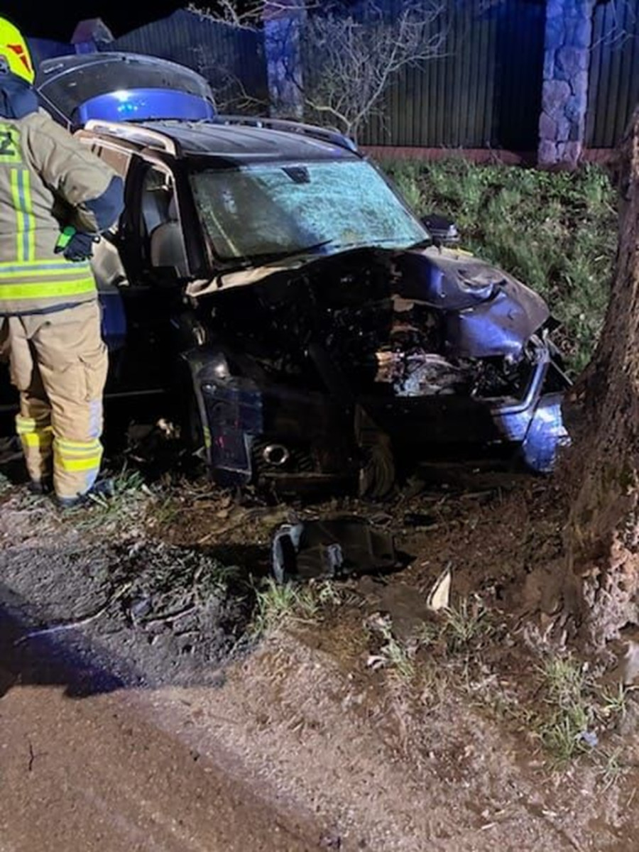 Jak informują policjanci z Komendy Powiatowej Policji w Giżycku, na prostym odcinku drogi powiatowej 65-letni kierujący samochodem marki Mercedes, z nieustalonych na chwilę obecną przyczyn, zjechał na przeciwległy pas ruchu, a następnie uderzył czołowo w przydrożne drzewo.