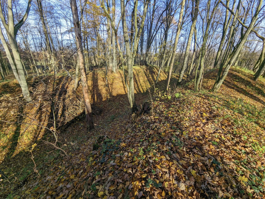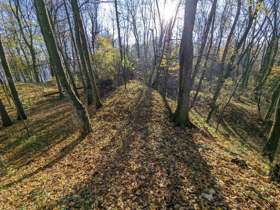 Na udostępnionych zdjęciach można zobaczyć także południową część grodziska, gdzie zachowały się najlepiej widoczne formy terenowe dawnego założenia obronnego.