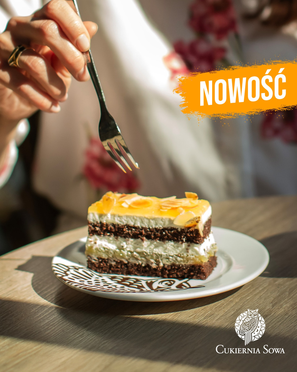 Kostka morelowa to totalnie zaskakujące, ale jakże trafione połączenie moreli, kawowego ponczu, kremu mascarpone i kakaowego biszkoptu.
