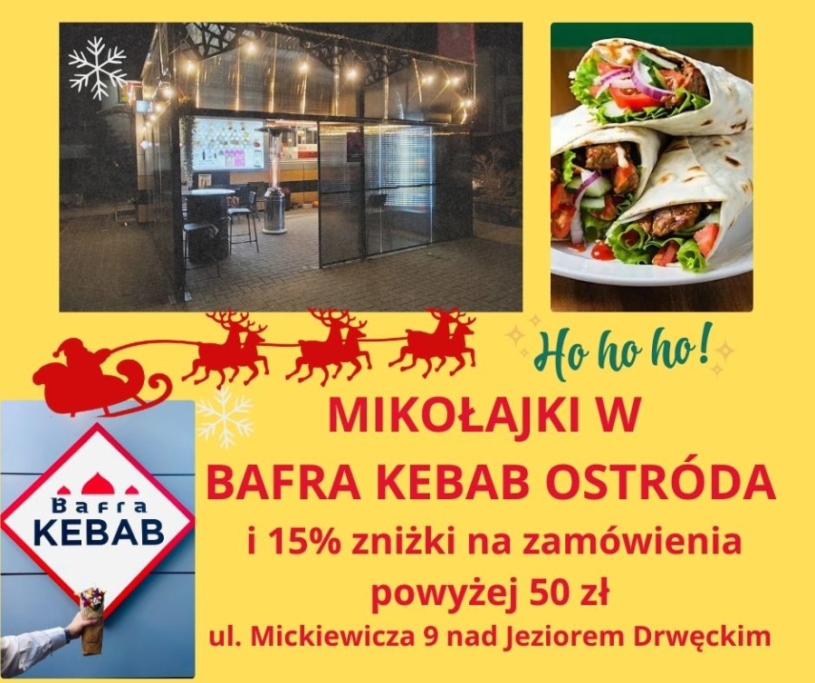 6 grudnia będzie też zniżka na zestawy dziecięce oraz coś słodkiego dla wszystkich i super świąteczna atmosfera. Dodatkowo niespodzianka i możliwość otrzymania vouchera! Szczegóły w Bafra Kebab Ostróda. Jak co weekend będzie także mięso kraftowe.