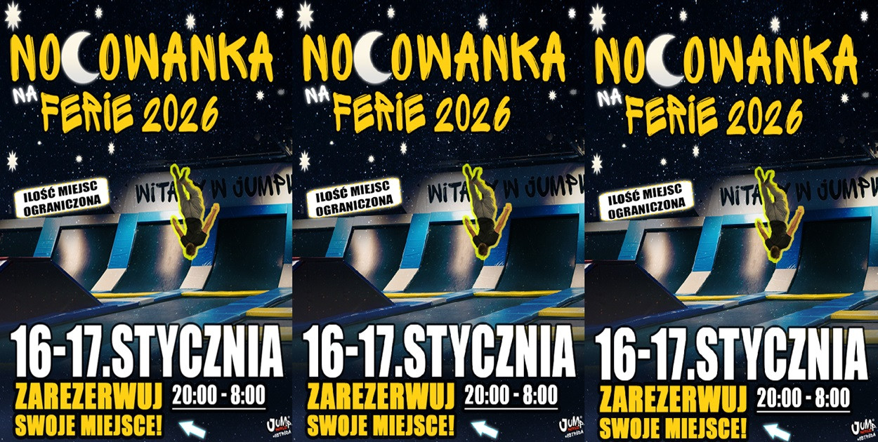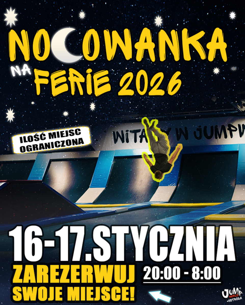 Nocka w JumpWorld Ostróda na start ferii zimowych 2026 - tak zaczną się ferie zimowe w Parku Trampolin JumpWorld Ostróda, których dzieci nie zapomną do końca roku! Przed nimi wyjątkowa nocka pełna zabawy i niespodzianek!