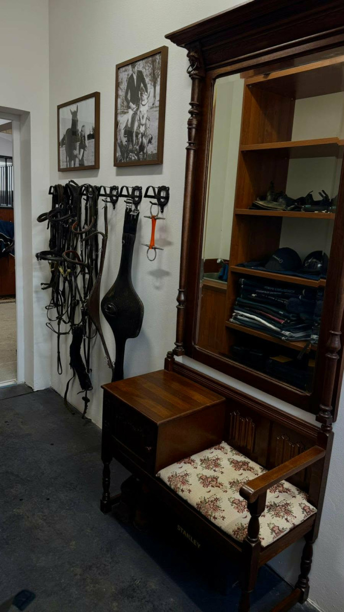 Do dyspozycji jeźdźców oraz osób towarzyszących pozostaje również ogrzewana przestrzeń wypoczynkowa z widokiem na plac treningowy – miejsce, w którym można na spokojnie odpocząć, napić się kawy, sięgnąć po coś słodkiego lub po prostu spędzić chwilę, obserwując pracę z końmi.