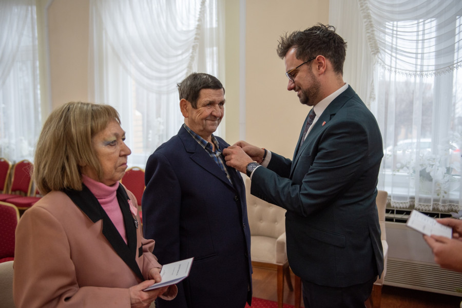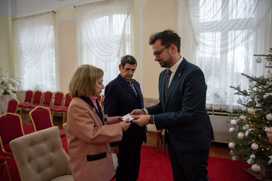 Z tej okazji Jubilaci zostali uhonorowani pamiątkowymi medalami oraz legitymacjami nadanymi przez Prezydenta Rzeczypospolitej Polskiej. Odznaczenia wręczył Burmistrz Ostródy Rafał Dąbrowski. Małżonkowie otrzymali również kwiaty oraz kosz prezentowy od Miasta Ostróda.