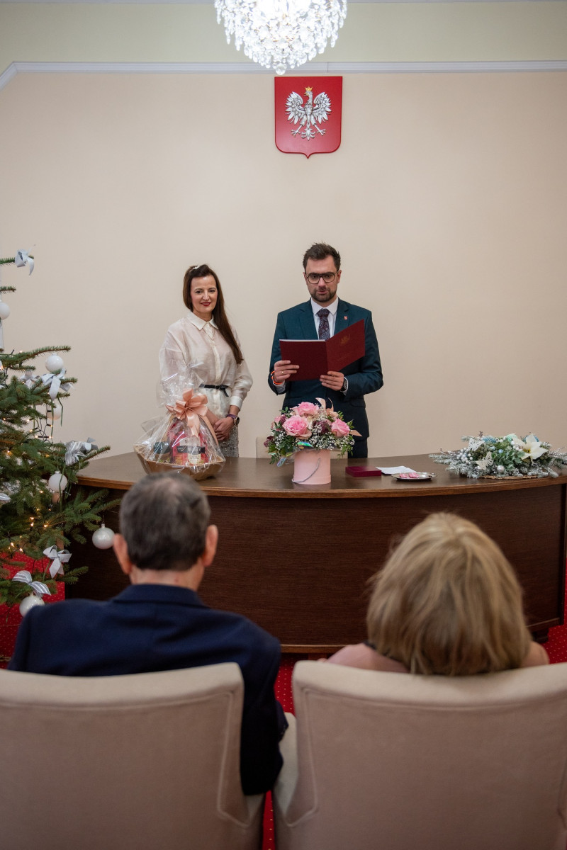 Podczas uroczystości nie zabrakło gratulacji i życzeń kolejnych lat spędzonych w zdrowiu, zgodzie i rodzinnej atmosferze. Złote Gody to nie tylko osobiste święto Jubilatów, ale także piękny przykład dla młodszych pokoleń mieszkańców miasta.