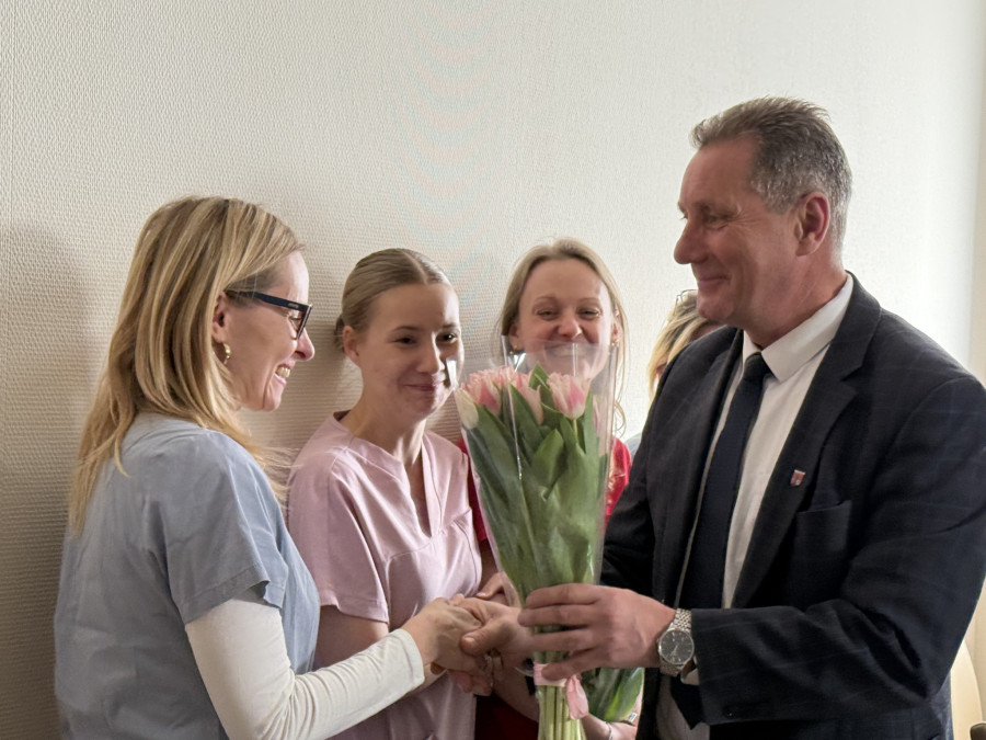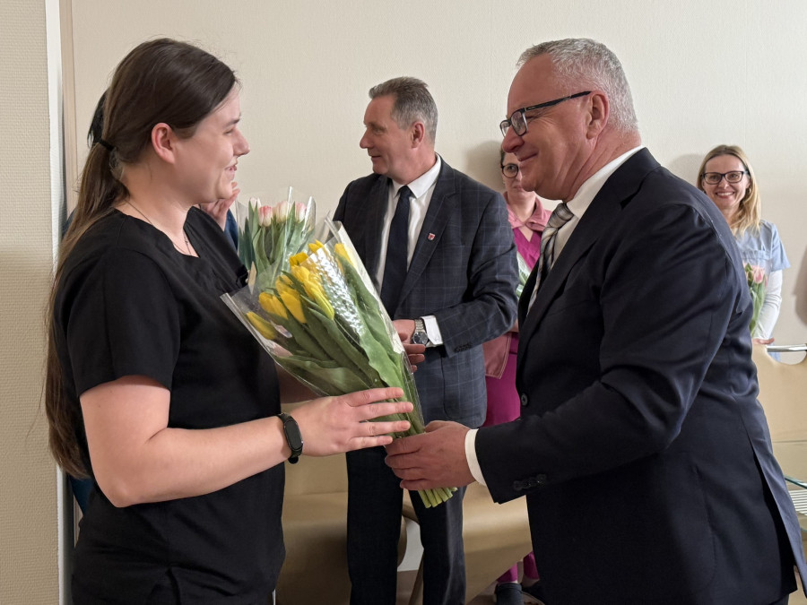 W ostródzkim szpitalu panie miały dziś swoje małe święto. Z okazji Dnia Kobiet Andrzej Wiczkowski - Starosta Ostródzki oraz Krzysztof Żynda - Wicestarosta odwiedzili dziś żeński personel Szpitalu w Ostródzie S.A., aby osobiście złożyć najserdeczniejsze życzenia oraz podziękować za codzienną, pełną poświęcenia pracę na rzecz mieszkańców Powiatu Ostródzkiego.