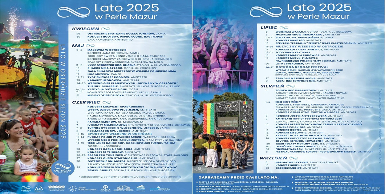 Z wieloma wydarzeniami możecie się zapoznać i na bieżąco zaglądać do specjalnej rubryki na naszym portalu Ostróda Flesz czyli Co?, Gdzie?, Kiedy? Specjalnie dla Was przygotowujemy stale aktualizowane zapowiedzi czekających nas wydarzeń nie tylko w Ostródzie, ale także w innych miejscowościach powiatu ostródzkiego.