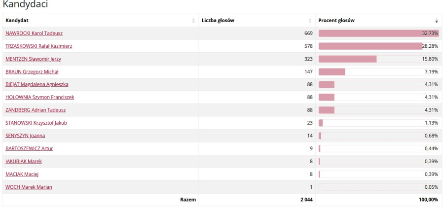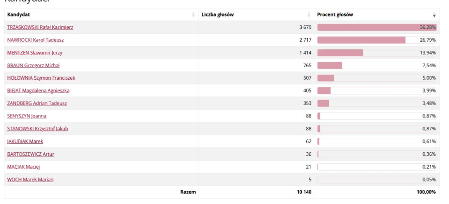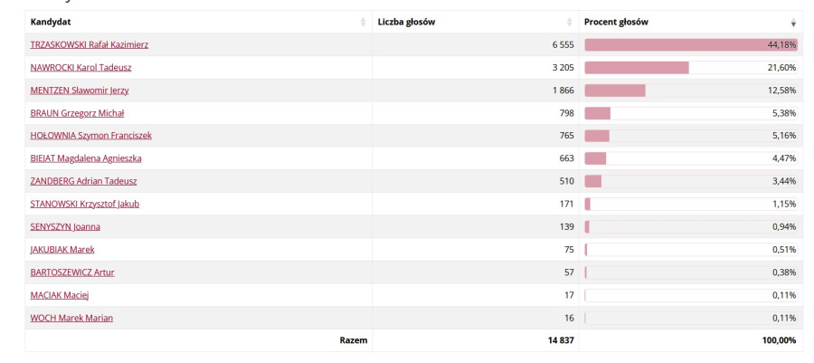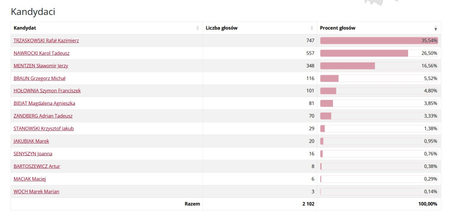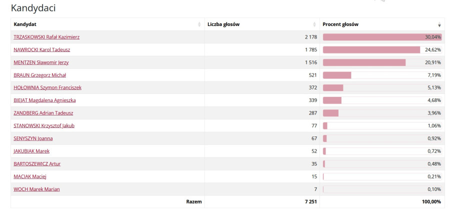 Rafał Kazimierz Trzaskowski – 2 178 głosów (30,04%)