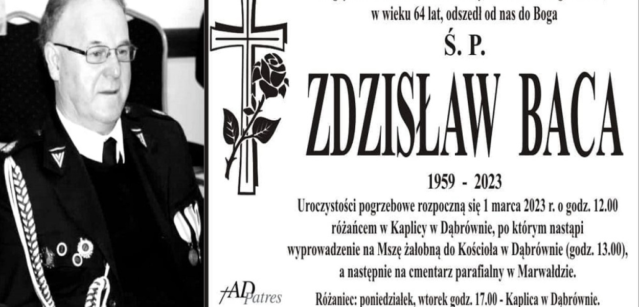 Dziś w poniedziałek 27 lutego odszedł Zdzisław Baca prezes klubu GKS Vel Dąbrówno, a także druh Ochotniczej Straży Pożarnej w Dąbrównie.?php>