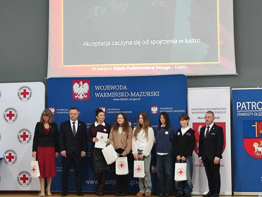 Szczególne powody do dumy ma powiat ostródzki. W kategorii szkół podstawowych uczniowie Szkoły Podstawowej w Durągu zdobyli III miejsce za poruszający film pt. „Lustro”.