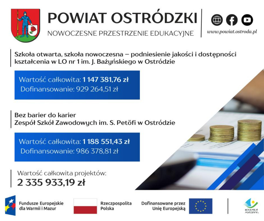 Serdeczne podziękowania dla wszystkich instytucji i osób zaangażowanych w tworzenie obu projektów dzięki którym uczniowie z powiatu ostródzkiego zyskają nowe możliwości!