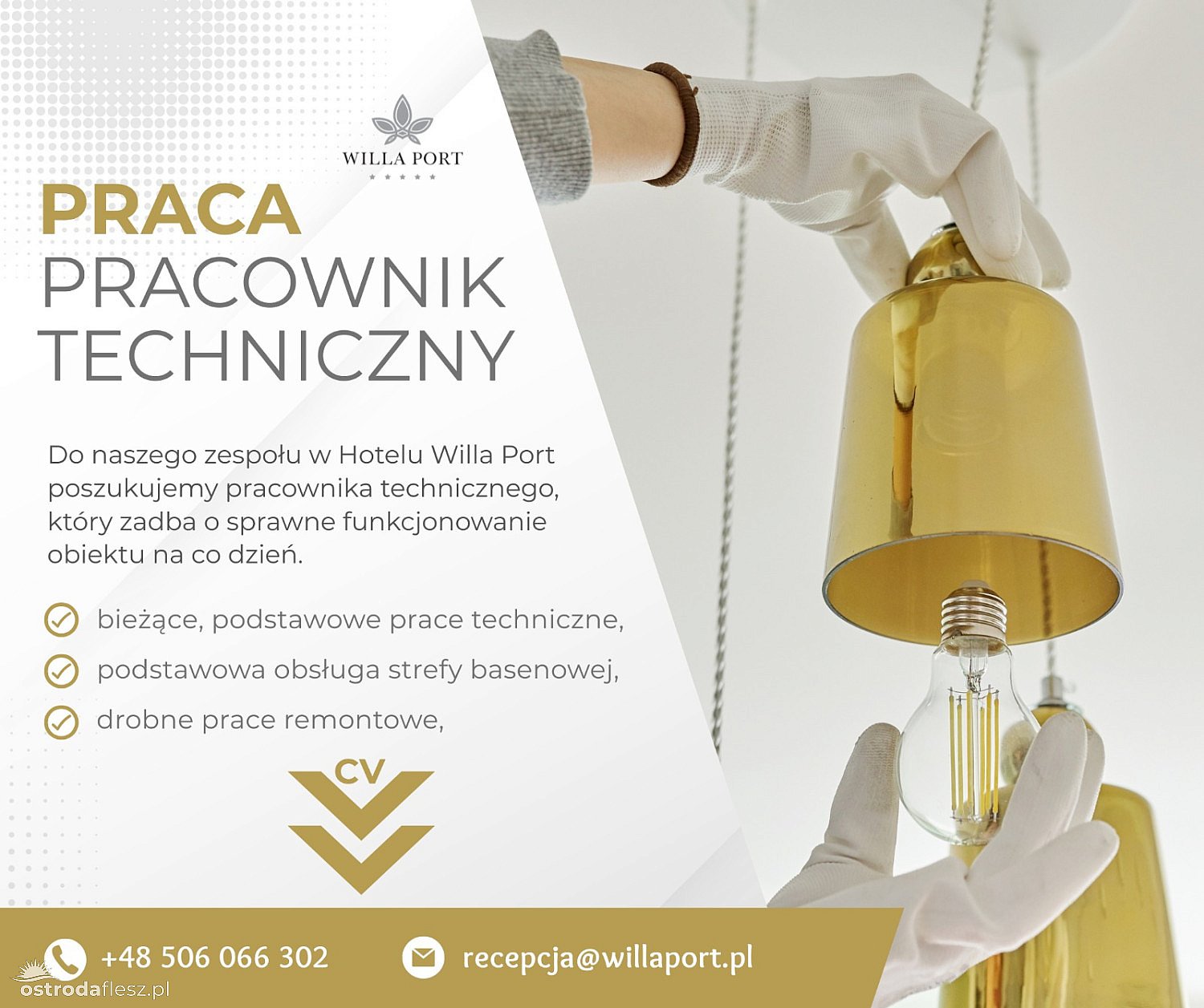Jeśli lubisz mieć realny wpływ na komfort Gości i sprawność obiektu, zapraszamy do kontaktu. 506066302