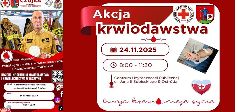 Ostróda: Oddaj krew i odbierz czujkę dymu w poniedziałek 24 listopada w CUP