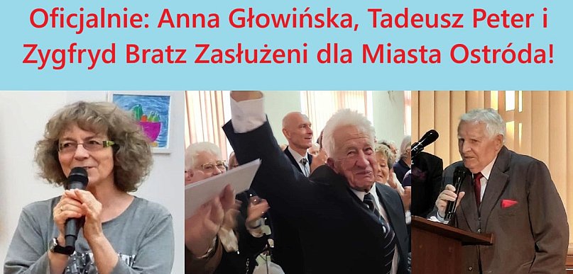 Jakiś czas temu informowaliśmy Was o rekomendacji kapituły, która po raz pierwszy przyznaje tytuł Zasłużonego dla Miasta Ostróda o nominacjach dla 3 osób. Przewodniczący Kapituły Adrian Godlewski poinformował wtedy o rekomendowaniu do tego zaszczytnego tytułu Anny Głowińskiej, Tadeusza Petera i Zygmunta Bratza. Dziś Rada Miasta zatwierdziła te nominacje i przegłosowała nadanie tego tytułu tym trzem osobom